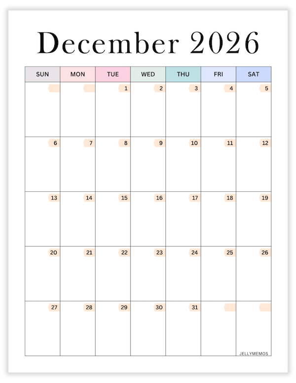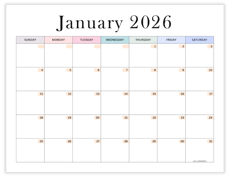 Aesthetic Calendar Printable Templates For 2026
