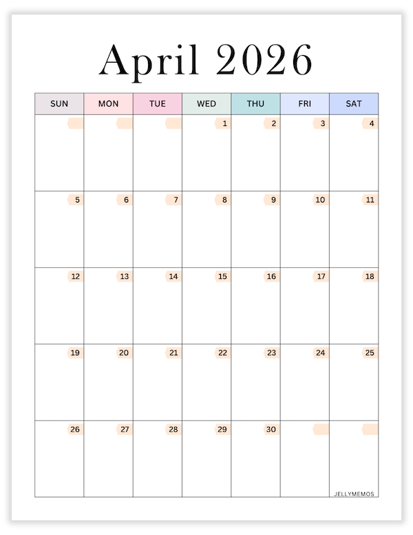 - Pastel colorful calendars
