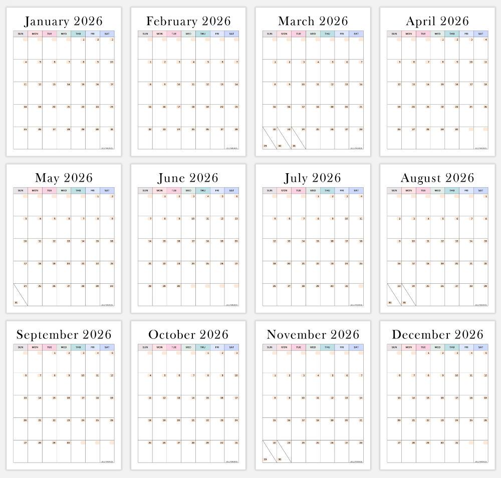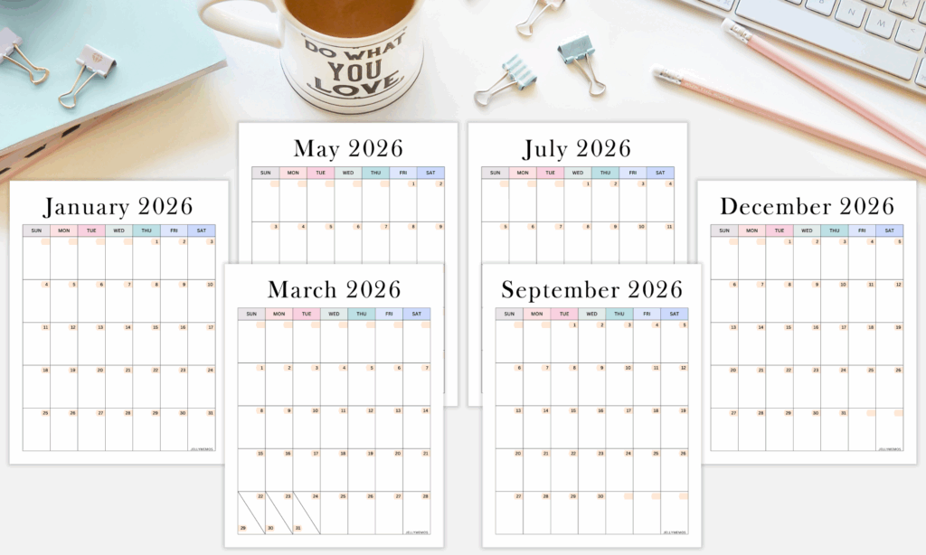 2026 Aesthetic Calendar Printables (Vertical)