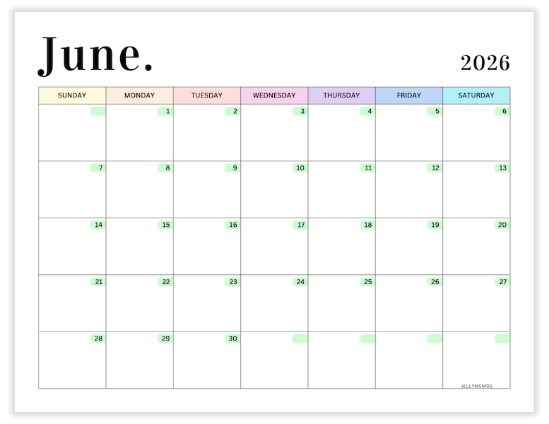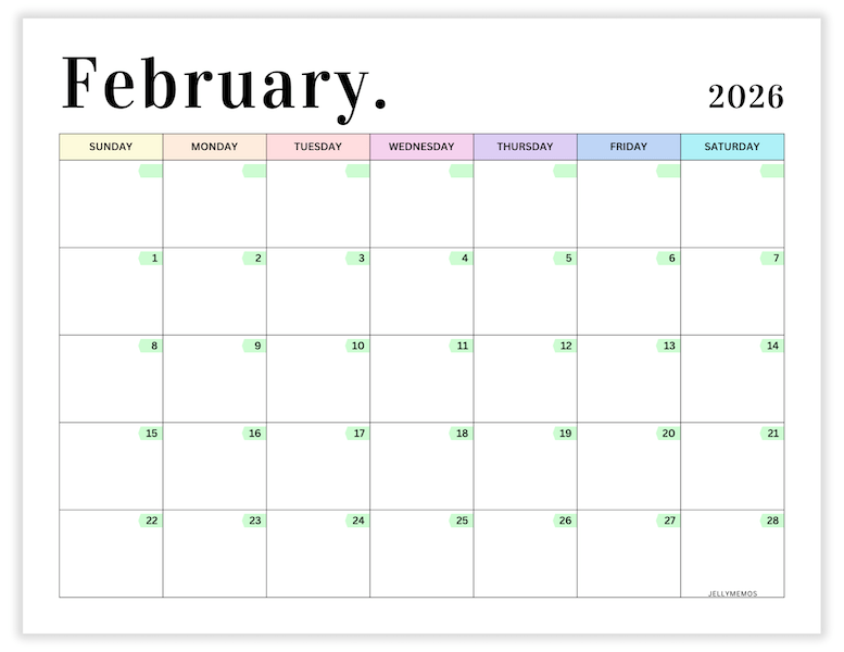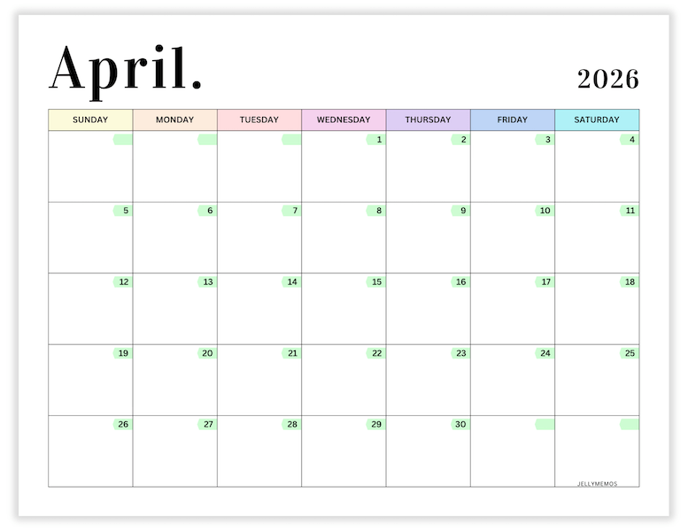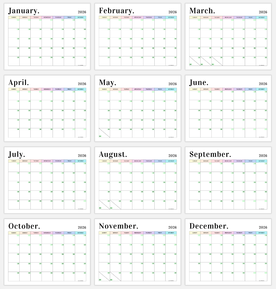 2026 Pastel Calendar Printables (Horizontal)