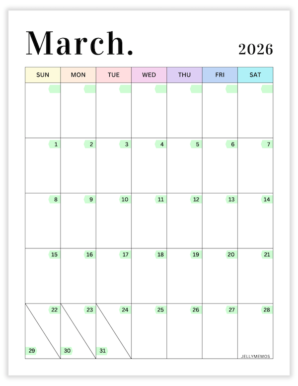 About Your 2026 Pastel Calendar Printable