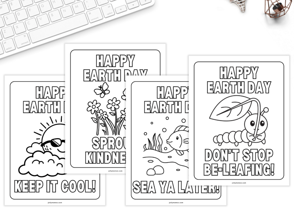 These adorable Happy Earth Day coloring pages come with letters to color in, cute images and funny puns that are sure to get anyone excited about protecting our planet.